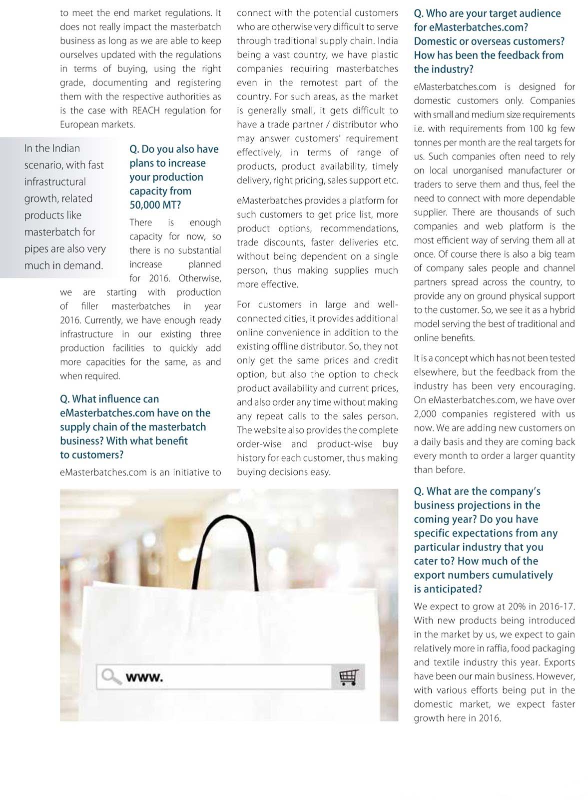 Mr. R.K. Aggarwal, discussing the challenges and opportunities in the Masterbatch Industry.